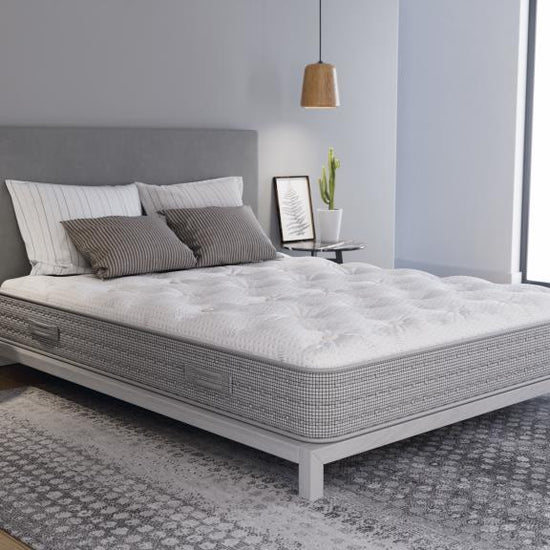 Quilted hybrid mattresses feature a luxurious, plush euro top, great for sleepers who enjoy a soft, cushiony feel with added comfort layers, while still having the benefits of a hybrid with the support of a firmer core. The plush quilted layer provides extra cushioning, relieving pressure points, particularly for side sleepers, and evenly distributes body weight to minimize discomfort on sensitive areas like the hips and shoulders.